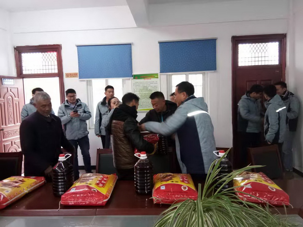 1月15日,大雪飄然而至,氣溫驟降,但是對于肥西縣李祠、葉崗社區(qū)的困難群眾來說卻是個(gè)暖心的日子。公用工程公司大官塘項(xiàng)目部黨員與合肥供水集團(tuán)重點(diǎn)辦黨支部聯(lián)合開展“慰問建設(shè)地困難群眾”黨日活動(dòng),向當(dāng)?shù)乩щy村民送去米、油、慰問金等,關(guān)心困難群眾的生活狀況及身體情況,并提前致以新春佳節(jié)的問候與祝福。